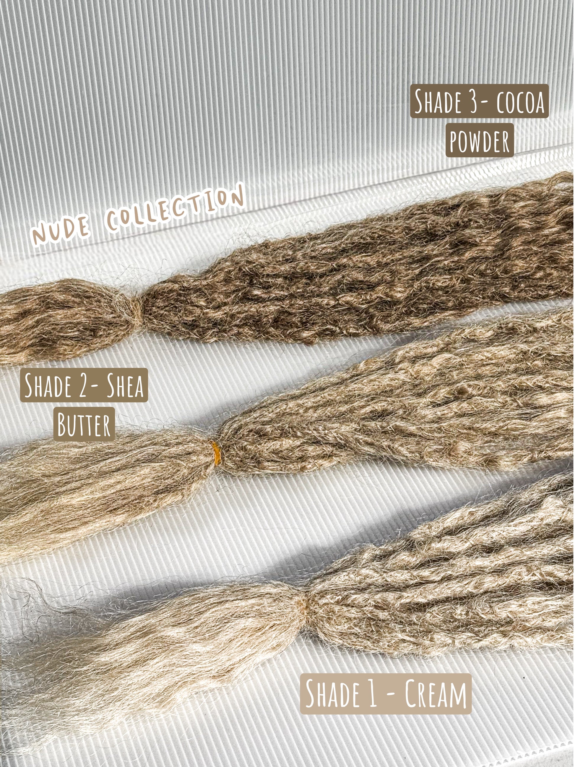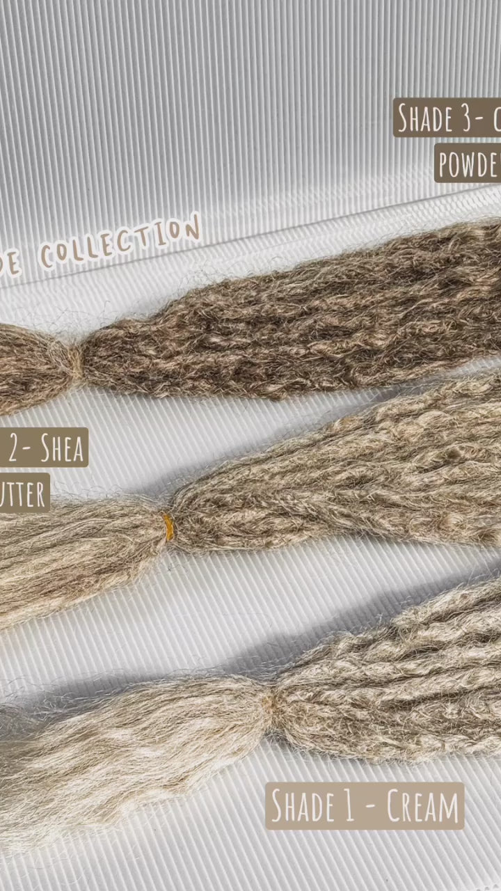 Our Nude Shades Locs are created with premium 613/Platinum Blonde hair and dyed using beautiful Ash tones and pigments, resulting in a neutral or what we call "Nude" like finish.
